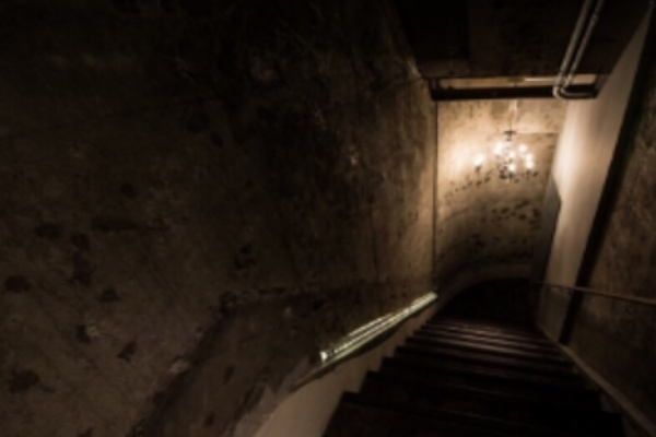 打ちっ放しのコンクリート」にシャンデリアを合わせ現代風なデザインに仕上がっています。。会員